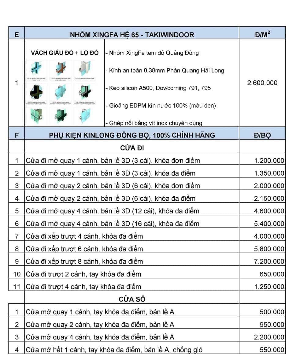 2. BÁO GIÁ CỬA NHÔM XINGFA MỚI NHẤT NĂM 2023