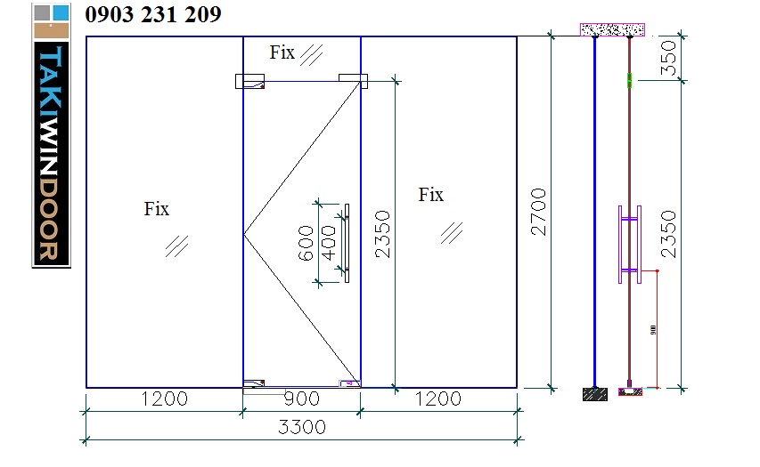 Bản vẽ đơn giản thể hiện cửa thủy lực mở đẩy 1 cánh