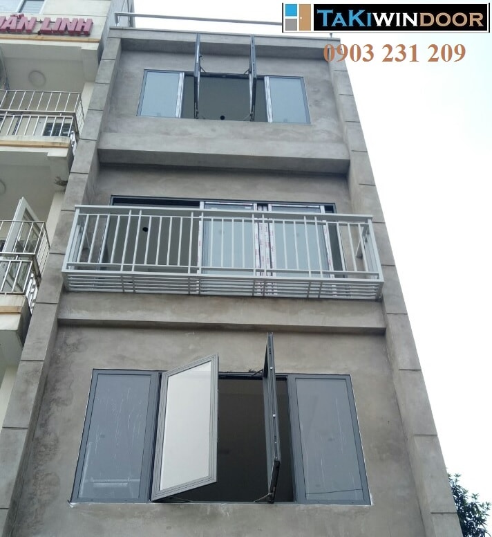 Mặt tiền được lắp đặt cửa nhôm Xingfa màu ghi sáng
