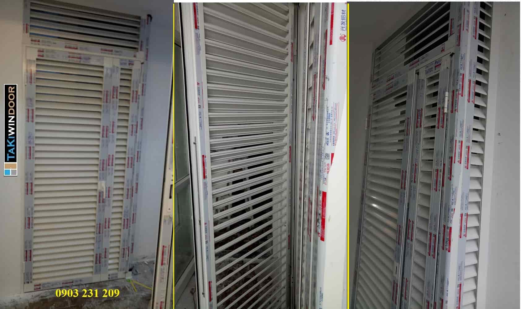 Cửa chớp nhôm Xingfa che cục nóng điều hòa đã lắp đặt hoàn thiện