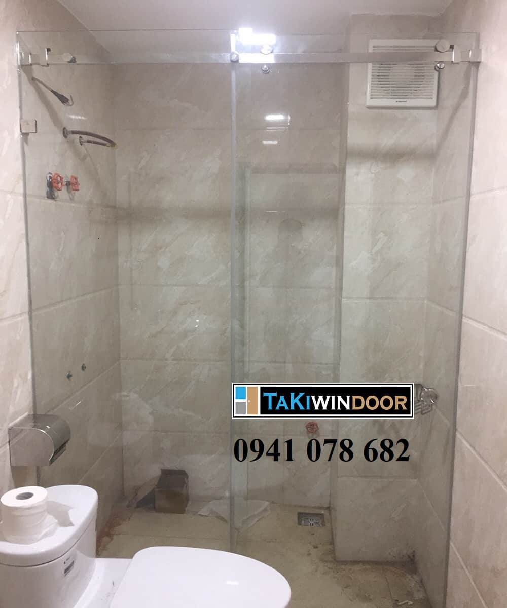 Thi công phòng tắm kính cửa lùa tại Thạch Thất