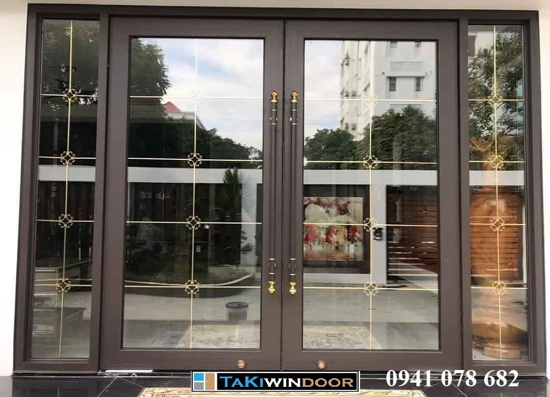 Thi công cửa thủy lực khung nhôm sử dụng kính hộp nan hoa đồng tại Cẩm Phả Quảng Ninh