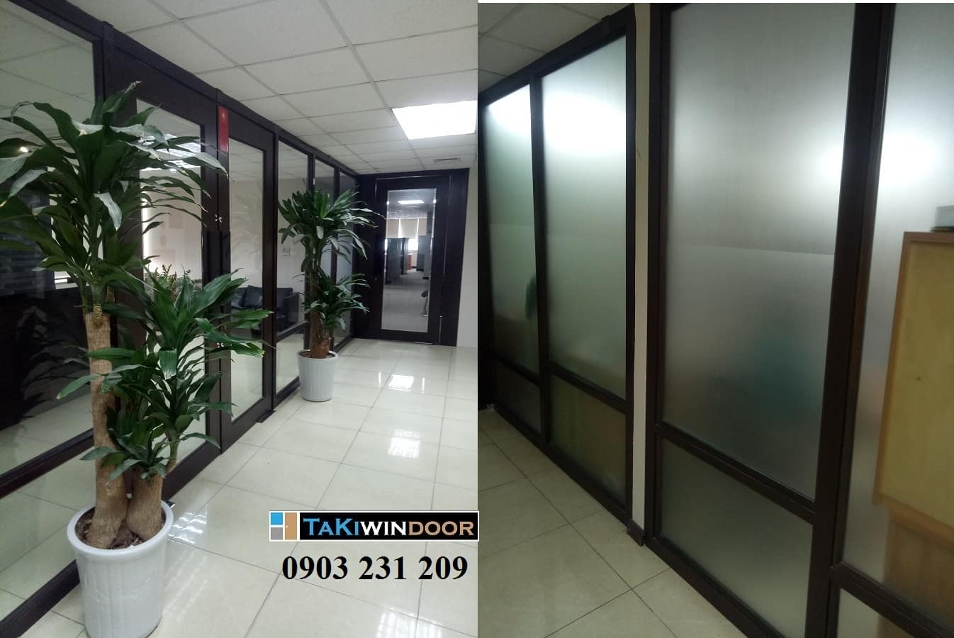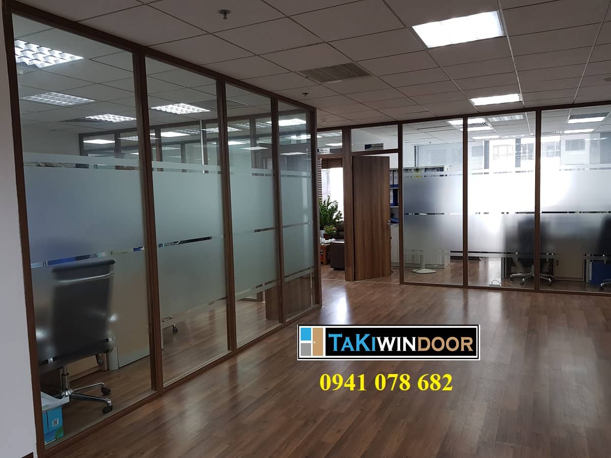 Thi công vách kính cường lực khung gỗ công nghiệp cho văn phòng