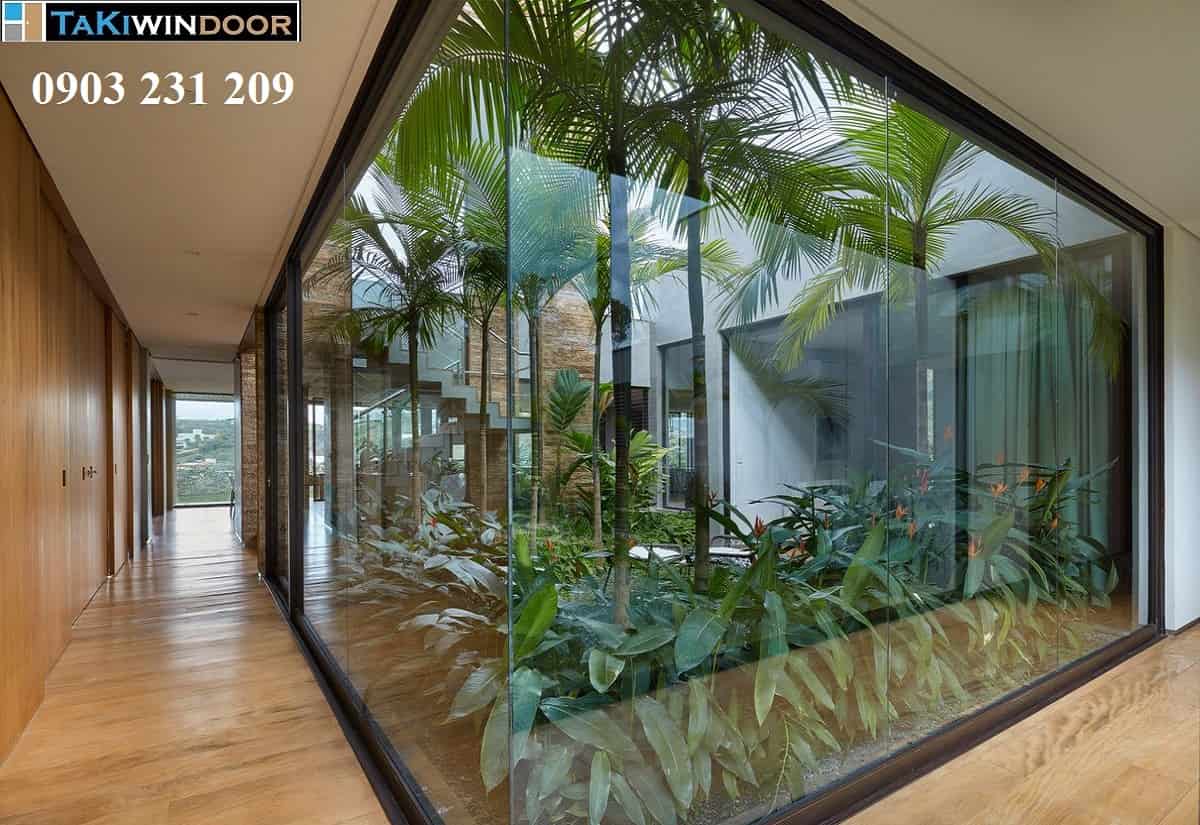 - Vách kính cường lực khung gỗ tự nhiên thường sử dụng trong các biệt thự, khu nghỉ dưỡng, spa, nhà riêng, nhà mặt phố, văn phòng