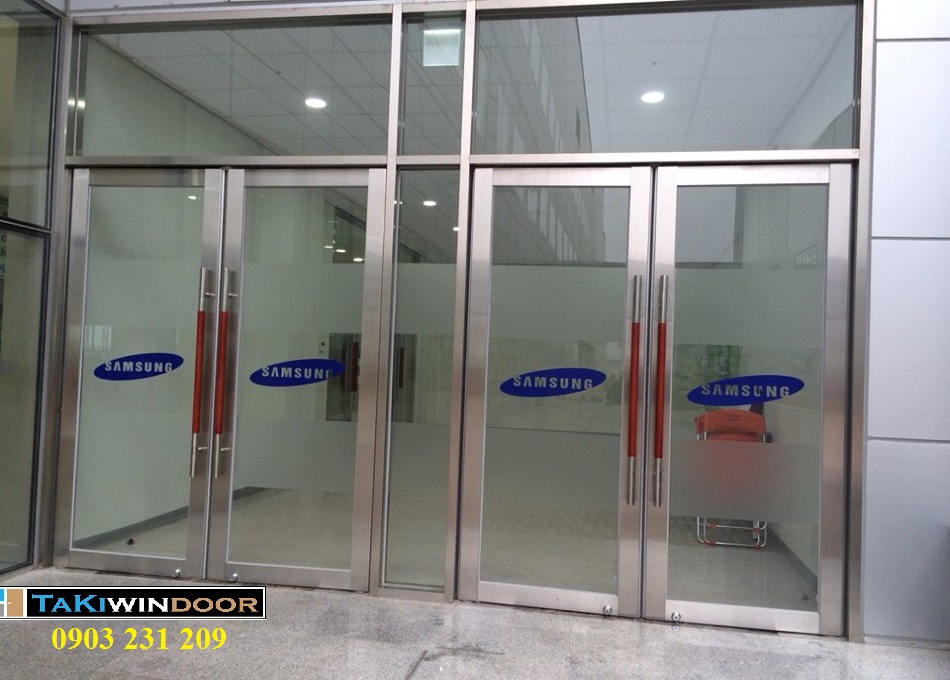 Thi công cửa kính thủy lực khung inox tại KCN Phổ Yên