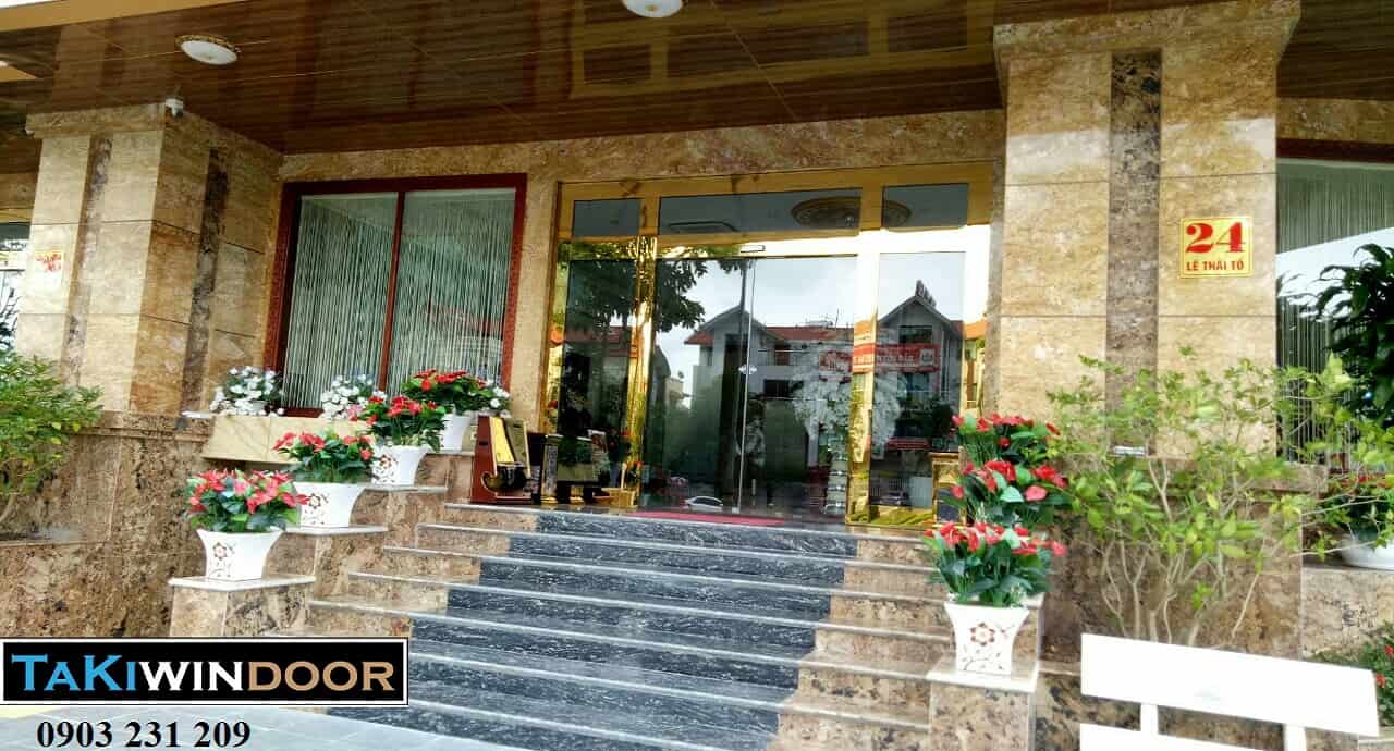 Cửa kính tự động khung inox vàng gương