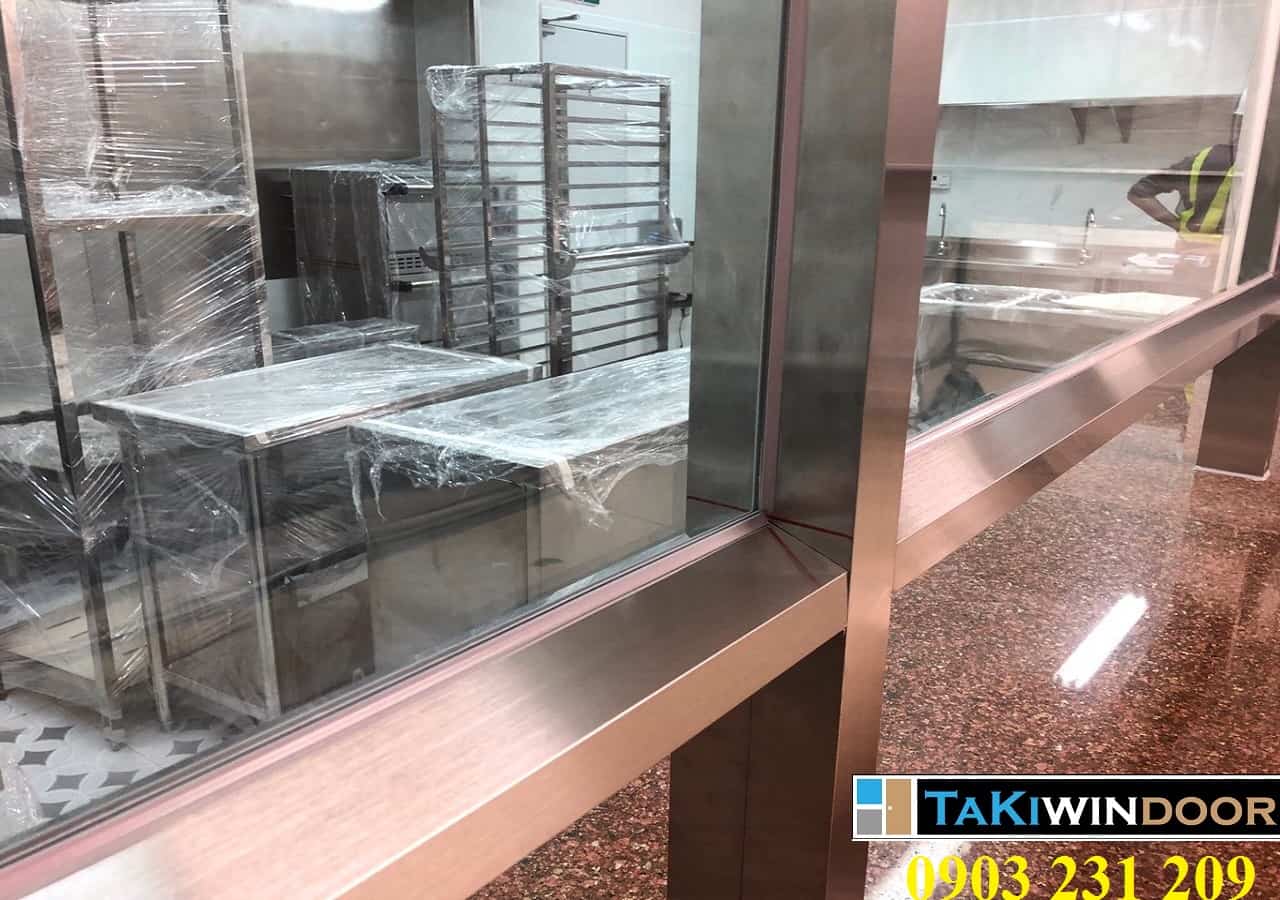 - Cửa, vách khung inox kết hợp với kính cường lực chống va đập, chịu lực tốt, bảo đảm tuổi thọ của cửa